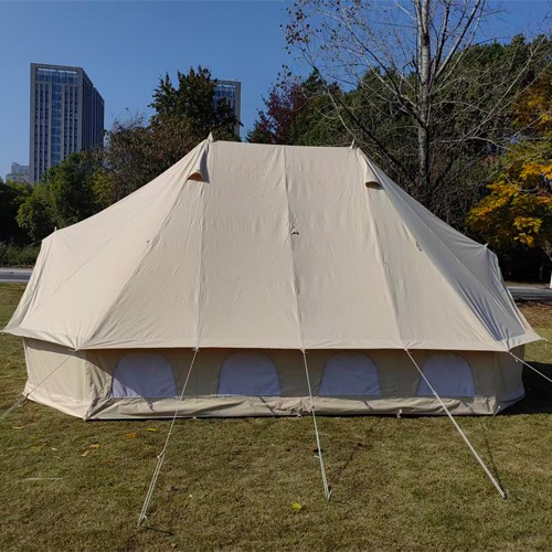 The emperor tent including two central pole , cross bar and three A frame .It is easy to set tent up . normally, there are 2 x doors for this tent . but we could custom made tent with 1x doors or 3xdoors if you needed . By the way , tent size is 600x400x300cm , all these poles creat impressive and comfortable inside space room. about tent fabric , there are 2 options , poly cotton canvas or cotton canvas .